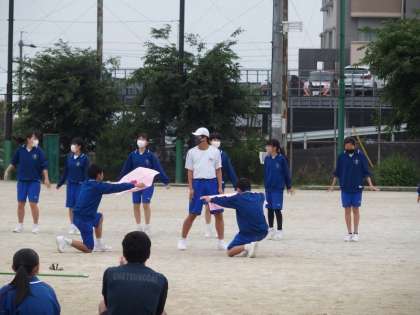体育祭まで1週間となりました。今日は、今まで準備や練習してきたことを縦割り団で見せ合い、互いに助言をし合ったり先輩から後輩に競技のコツを伝えたりする機会を設けました。