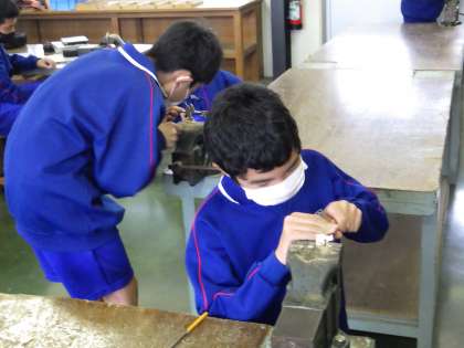 24学級は、技術の「金属加工 —キーホルダー作りー」の授業の様子です。進度に合わせて、様々な工具を使って、キーホルダーを作っていました。6月には完成予定です。どんなキーホルダーができるのか楽しみです。