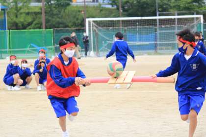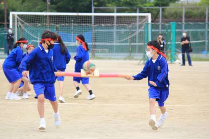 11学級のボール運びリレーの様子です。