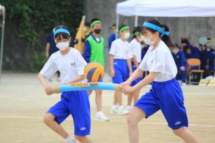 12学級のボール運びリレーの様子です。