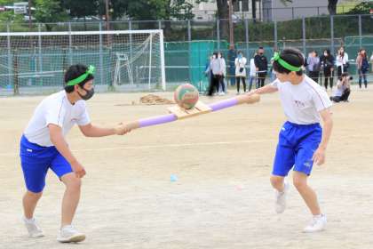 33学級のボール運びリレーの様子です。