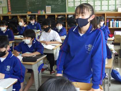 11学級は、数学の「正の数・負の数の計算」の授業の様子です。積極的に挙手し、問題の解き方について説明していました。