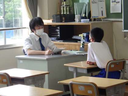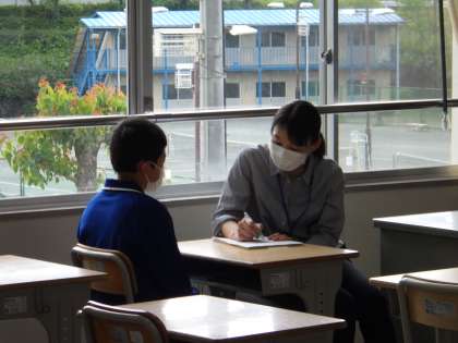 事前に実施した「ふれあいアンケート」をもとに、学習、生活、進路、友人関係、部活動等について、一人一人と面談を行います。