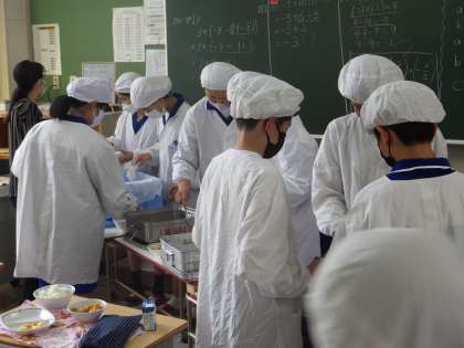 給食の準備では、給食当番の活動も早くなりました。また、待っている生徒も落ち着いて座って待っています。