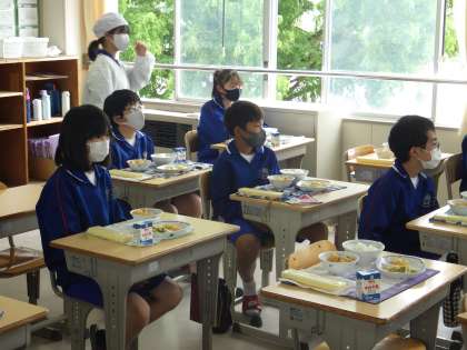 6/1(水) 給食の様子です(1年生) 1