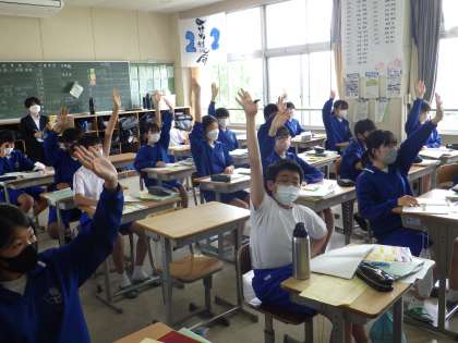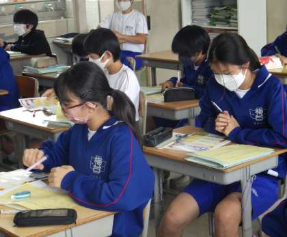 22学級は、数学の「連立方程式の解き方」の授業の様子です。積極的に発言したり、集中して課題に取り組んだりと、活力がみなぎっていて、すごいと思いました。