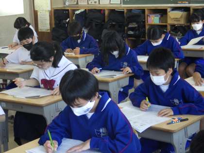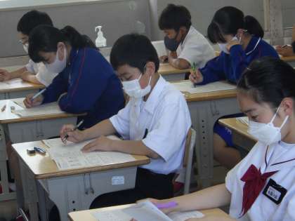 11学級の前期中間テストを受けている様子です。