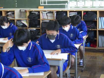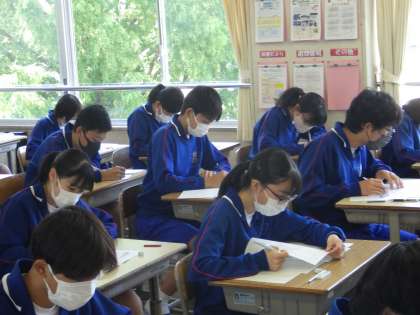 31学級の前期中間テストを受けている様子です。