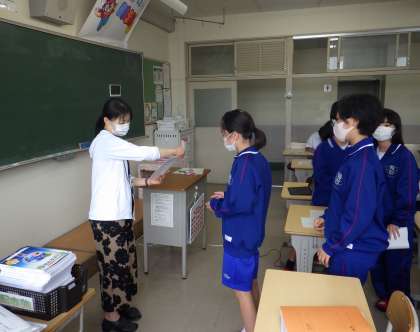 12学級は、国語の授業の様子です。先週行った前期中間テストの返却を行っていました。「テストどうだった」と聞くと、「中学になって初めてのテストなので、結果が心配です」という言葉が返ってきました。テスト返却後に聞くと、「予想していたより、よかったです」と嬉しそうに話していました。