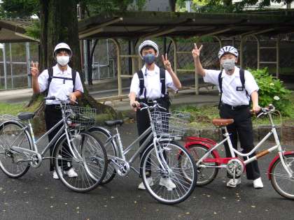 職場体験の事前訪問に出発している生徒の様子です。