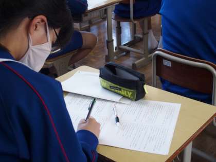 先日行われた中間テストの解説をしていました。漢文の返り点のつけ方、読み方などの復習も行いました。忘れてしまっていたところは、この機会にしっかり覚え直しておきましょう。