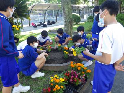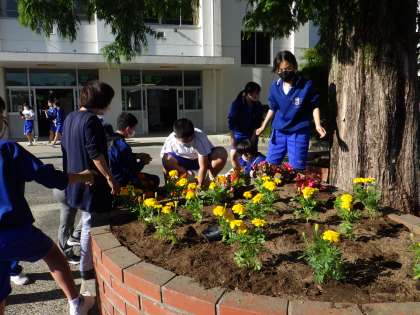 花壇の植え替えを行っていました。学校の雰囲気が、とても華やかになりました。ありがとうございます。