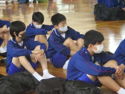 修学旅行に向けて、学年集会の様子です。