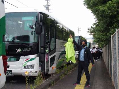 出発式を終え、バスに乗り込み、東京に向けて出発です。