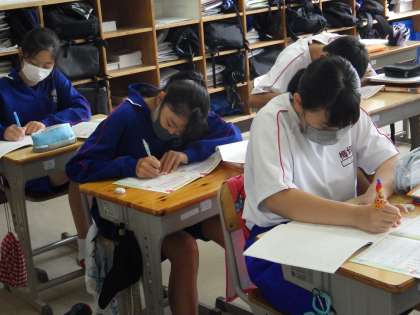 13学級は、国語の授業の様子です。新出漢字をワークや漢字練習帳に書き込みながら、確実に書けるように集中して取り組んでいました。