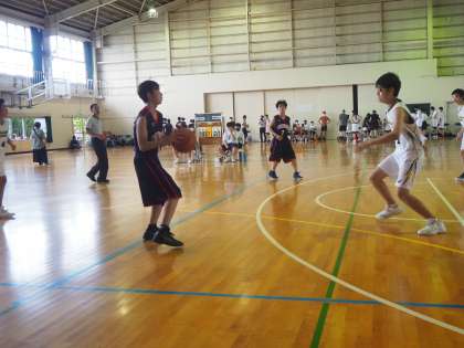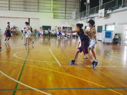 下の写真は、男子バスケットボール部の試合の様子です。