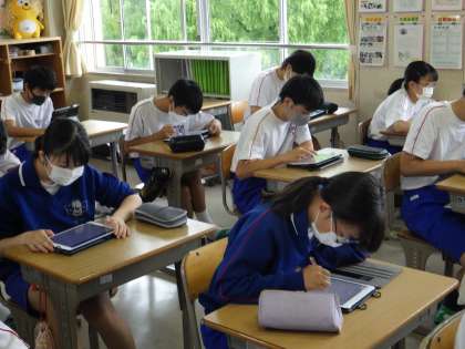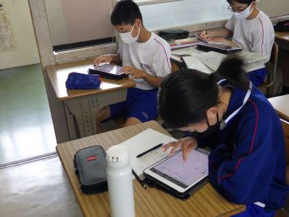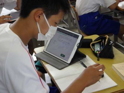 生徒は、タブレット画面の問題を見ながら、集中して取り組んでいました。