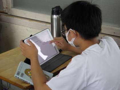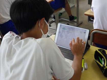 22学級のデジタルドリル教材【AI型教材Qubena(キュビナ)】を活用した朝の学習の様子です。