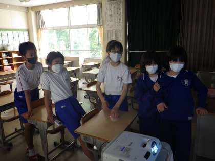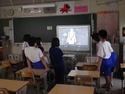 文化部発表会に向けて、教室で映像が流れるか確認していました。