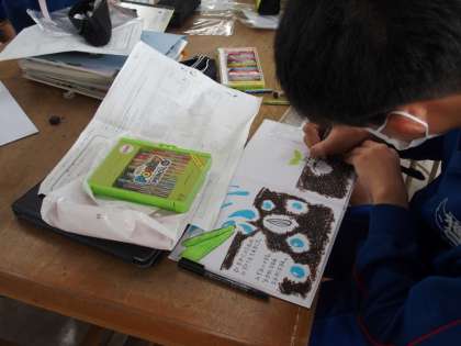 それぞれがストーリーを考え、下描きをもとに清書を進めました。