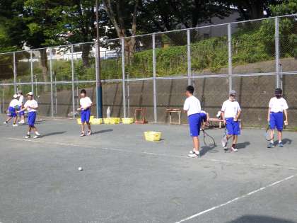 暑い時間帯を避けるとともに、給水時間を頻繁に取りながら練習を行っています。