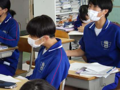 32学級は、英語の授業の様子です。昨日行われた学習診断テストの解き方、答えの解説を行っていました。解説を聞き「そういう意味だったのか!」と呟いていました。