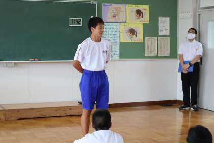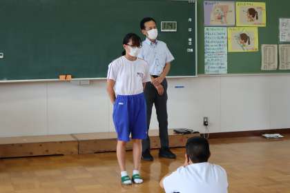 2年生の水泳で活躍した生徒の表彰の様子です。
