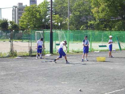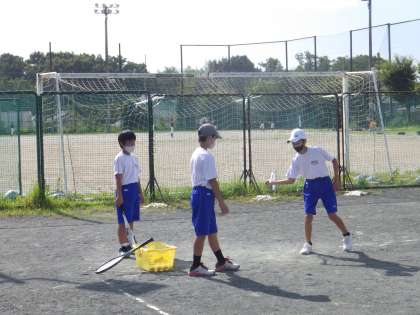 本日も気温が高くなる予報が出ています。WBGTを計りながら行うとともに、給水タイムを取りながら、練習を行っています。