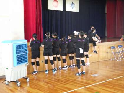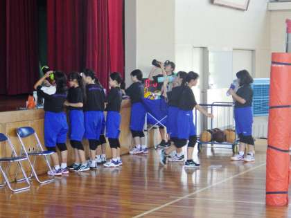 バレーボール部の活動の様子です。 給水タイムです。