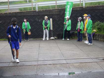 PTAの環境委員・民生児童委員の方々による朝の挨拶運動の様子です。