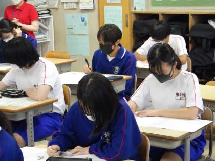32学級は、音楽の授業の様子です。学期のまとめテストを行っていました。一問一問集中して解いていました。