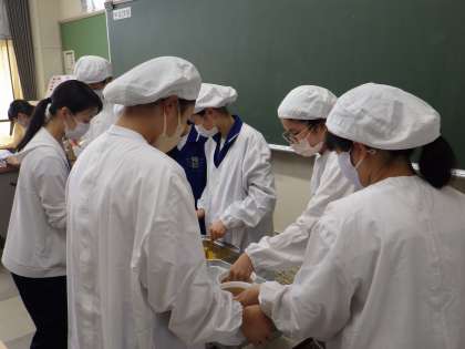 どの学級も、手洗いを丁寧に行い、配膳を無言で行っていました。待っている生徒も、落ち着いて過ごしていました。
