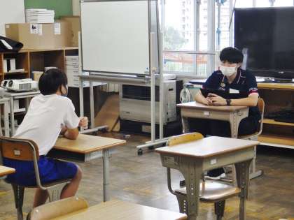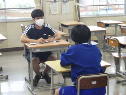 事前に実施した「ふれあいアンケート」をもとに、学習、生活、進路、友人関係、部活動等について、一人一人と面談を行っています。