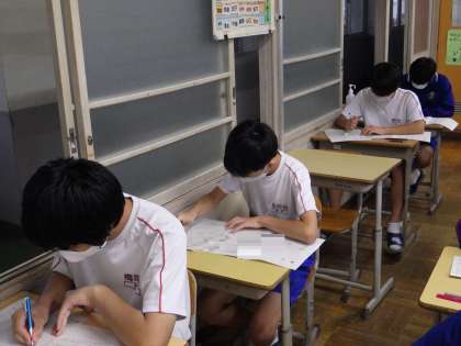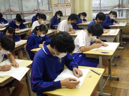 教室に行くと、一問一問集中してテストに取り組んでいる生徒の姿が見られました。