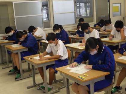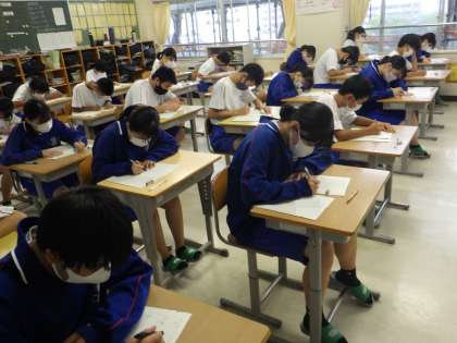 24学級の前期期末テストを受けている様子です。