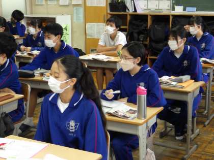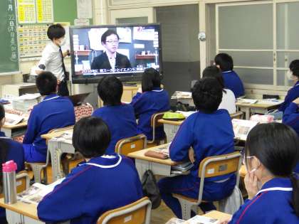 34学級は、社会の「グローバル社会と人権」の授業の様子です。NGOの活動について、デジタル教科書の動画を見ながら、理解を深めていました。