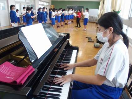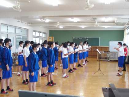 12学級は音楽です。来月行われる合唱コンクールに向け、合唱の練習をしていました。