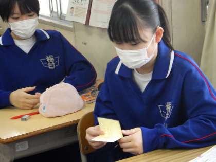 31学級は、社会の「選挙の意義と仕組み」の授業の様子です。豊田市選挙管理委員会から借りてきた模擬投票用紙や投票箱を使って、選挙体験を行っていました。投票用紙が折ってもすぐに開くのを見て「こんなふうになっているんだ!」と驚いていました。