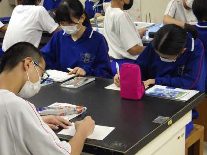 12学級は、道徳の授業の様子です。真剣に音楽活動に取り組む動画を見ながら、今後の合唱コンクールに向けての練習の取り組み方について考えていました。
