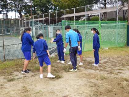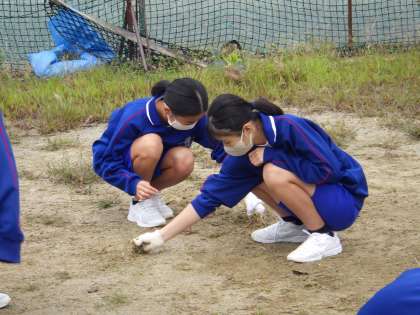 10/13(木) 運動場の草取りボランティアの様子です(1年生) 2