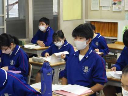 34学級は、国語の授業の様子です。先週行われた学習診断テストで間違いが多かった問題の解き方、考え方について解説を聞きながら、確認していました。