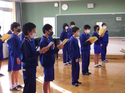 34学級の帰りの会後の合唱練習の様子です。