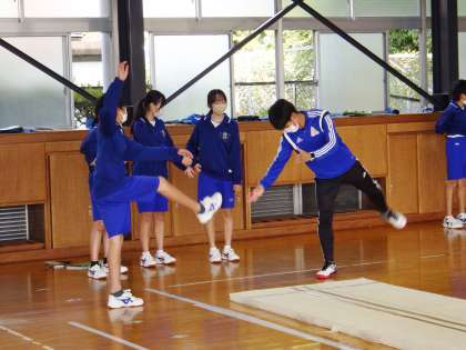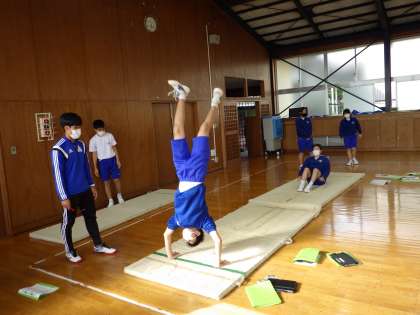 23学級は、体育の「マット運動」の授業の様子です。技能の習得に向けて、教師に積極的に質問をするなど、意欲的に取り組んでいました。