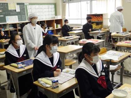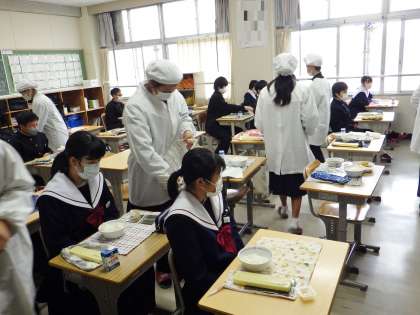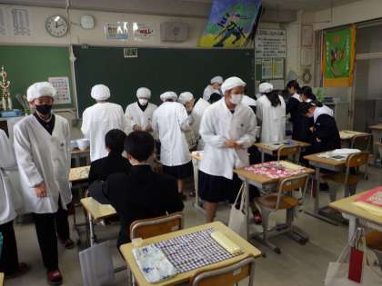 13学級の給食準備の様子です。