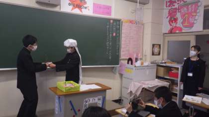 1限に、11学級で国語の研究授業を行いました。授業では、古典文学の竹取物語の一場面を取り上げ、登場人物の気持ちや物語の主題について考えました。話し合いでは「大切な人からもらったものを燃やす帝の気持ちには共感できない」「帝はかぐや姫への思いを断ち切ろうとしたのかな」「かぐや姫は帝にまた会いたいから不死の薬を渡したのかな」など、一人一人が想像力を働かせ、さまざまな視点から意見を出し合い、物語の世界のイメージを膨らませることができました。