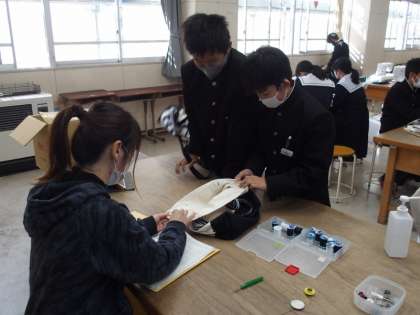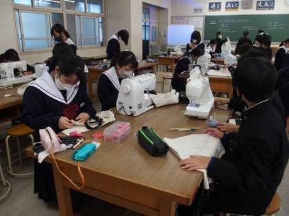 11学級は家庭科のバッグづくりに取り組んでいました。