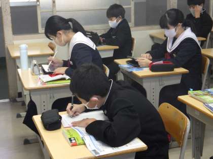 朝の時間を使って、集中してテスト勉強を行っていました。表情からも緊張感が伝わってきました。