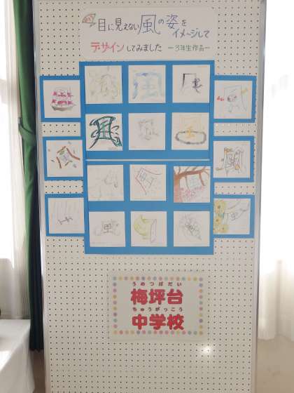 「目にみえない風の姿をイメージしたデザイン」の作品です。3年生が美術の時間に作成しました。