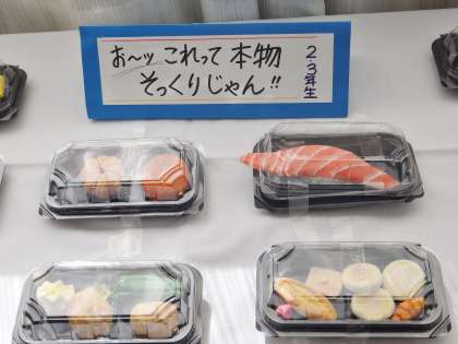 「お〜ッこれって本物そっくりじゃん」の作品です。2、3年生が美術の時間に作成しました。