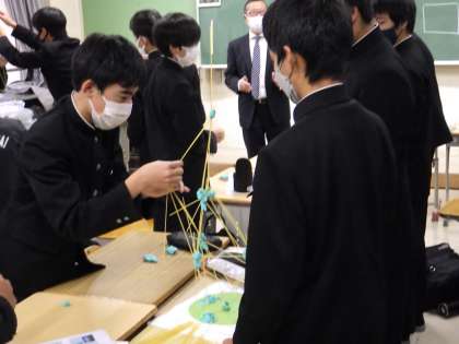 「建築構造を学ぼう!〜パスタタワー〜」の様子です。